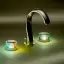 THG Island Смеситель для раковины на 3 отверстия, ручки с подсветкой, с донным клапаном, цвет: Soft gold