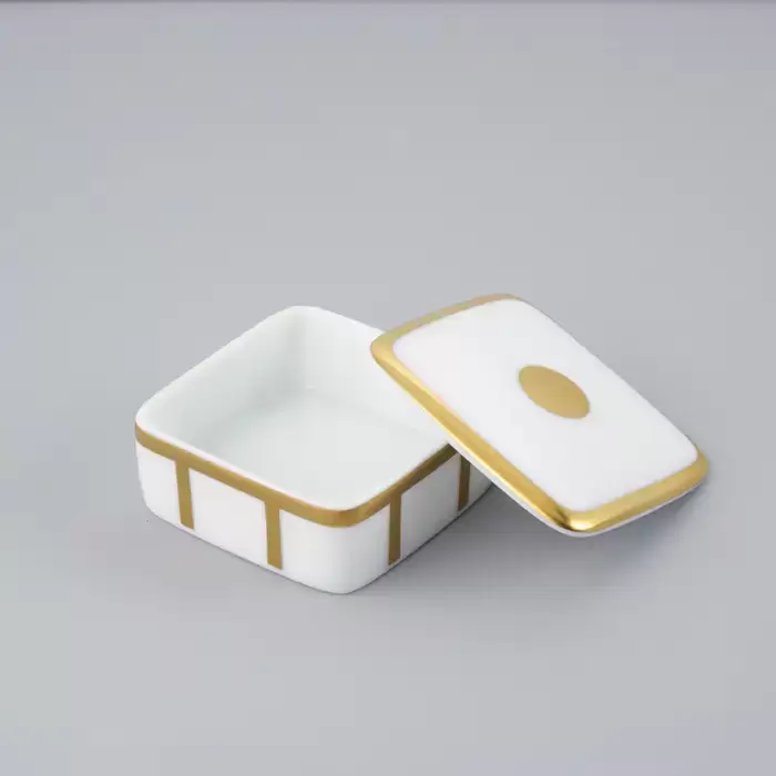 THG ITHAQUE DECOR OR Керамическая коробка для таблеток, декор золото, цвет: белый