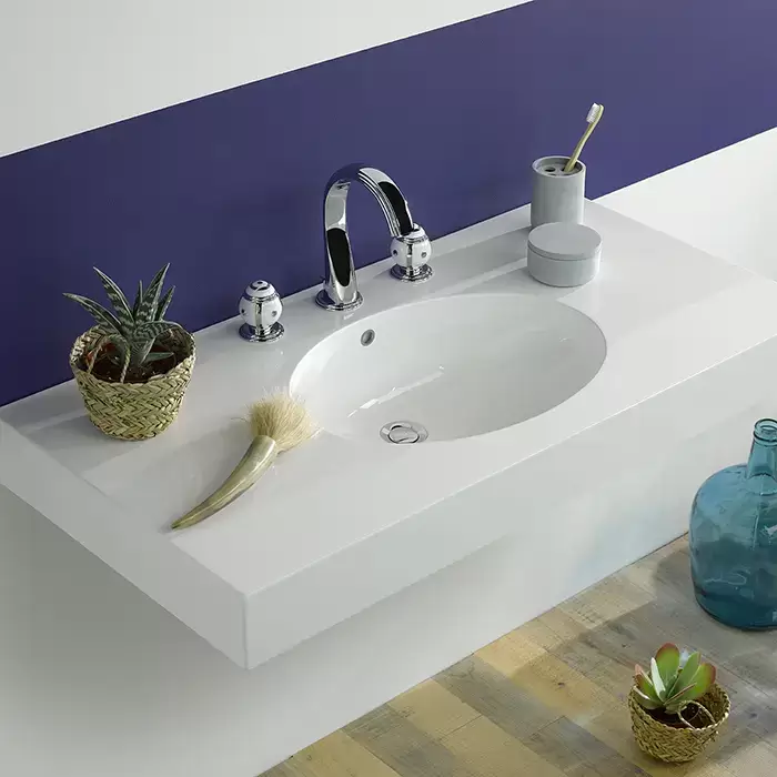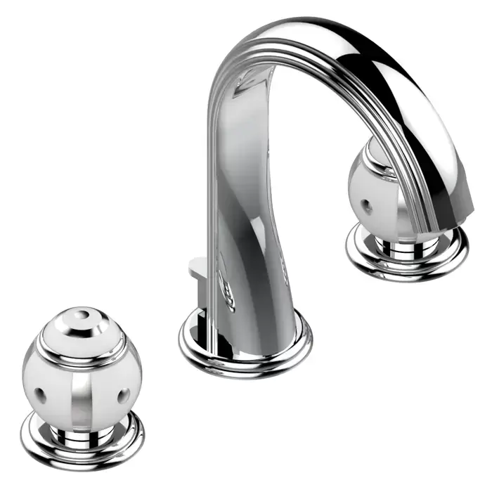 THG Ithaque decor platine Смеситель для раковины, 3 отв., цвет: хром/платина/белый фарфор