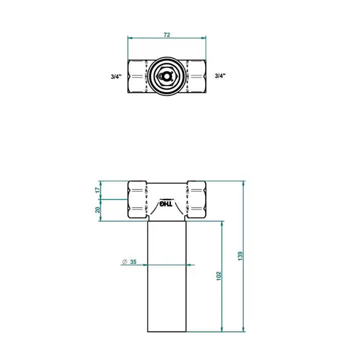 THG Корпус вентиля 3/4", встраиваемый в стену, для холодной воды, правый, цвет: золото
