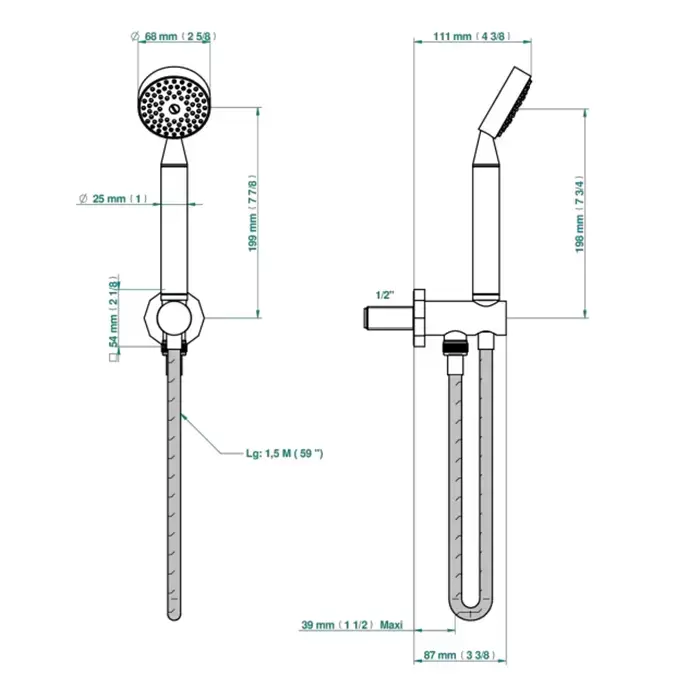 THG Les Ondes Душевой гарнитур: с ручным душем, настенным держателем, подводом воды и шлангом 150см., цвет: Matt nickel