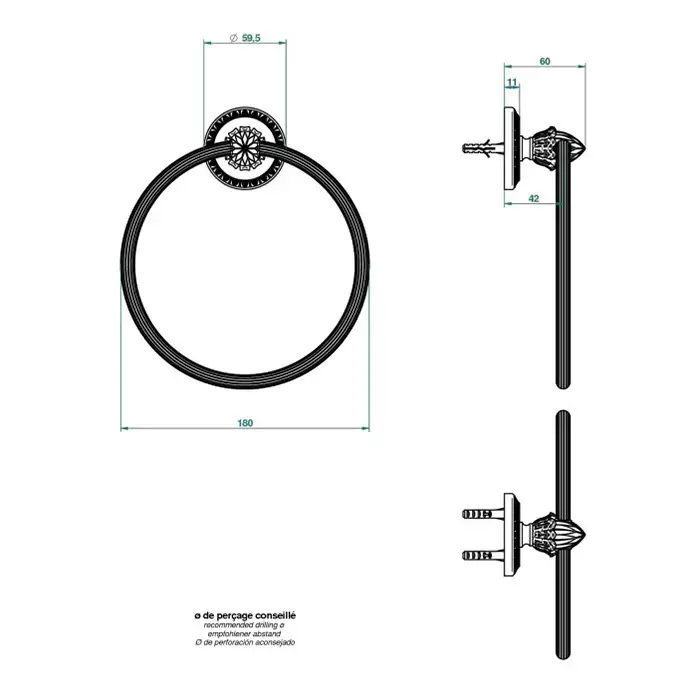 THG Malmaison metal Полотенцедержатель-кольцо 18см., подвесной, цвет: полированное золото