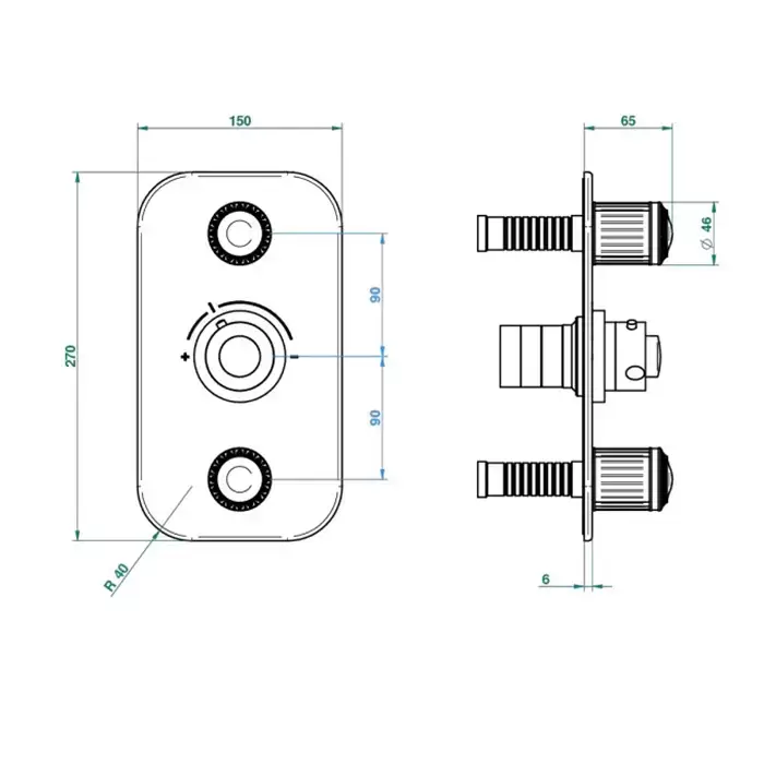 THG Malmaison metal Смеситель для душа встраиваемый, термостатический, с 2 запорными вентилями, внешняя часть, цвет: полированное золото