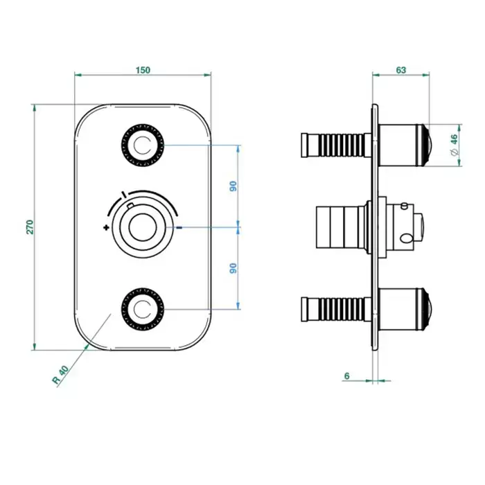 THG Malmaison Portoro Смеситель для душа встраиваемый, термостатический, с 2 запорными вентилями, внешняя часть, цвет: полированное золото