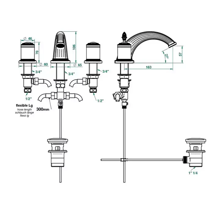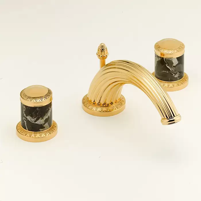 THG Malmaison Portoro Смеситель для раковины на 3 отверстия, с донным клапаном, цвет: полированное золото