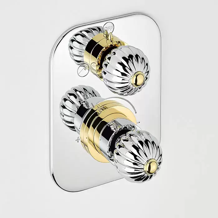 THG Mandarine metal Смеситель для душа встраиваемый, термостатический, с переключателем на 2 положения, внешняя часть, цвет: хром/золото