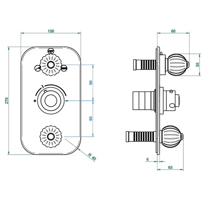 THG Mandarine metal Смеситель для душа встраиваемый, термостатический, с переключателем на 2 положения и запорн вентил, внешн часть, цвет: хром/золото