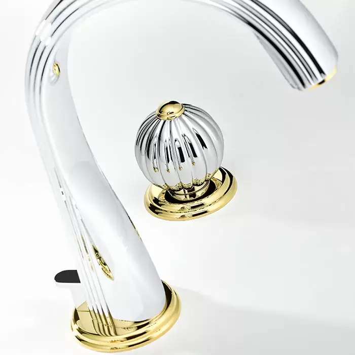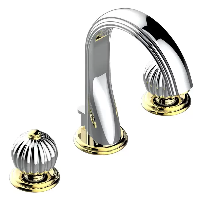 THG Mandarine metal Смеситель для раковины на 3 отверстия, с донным клапаном, цвет: хром/золото