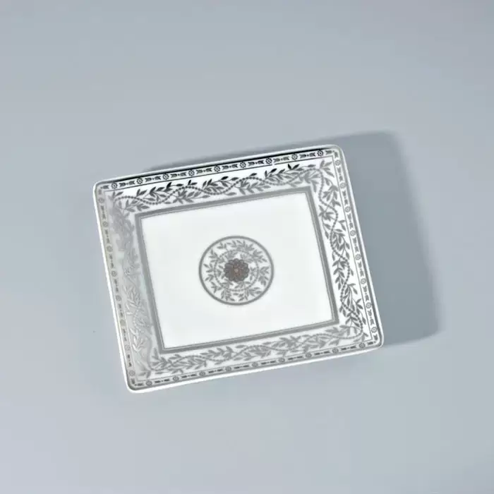 THG MARQUISE BLANC DECOR PLATINE Поднос керамический 122х110 мм., настольный, small size, декор платина, цвет: белый