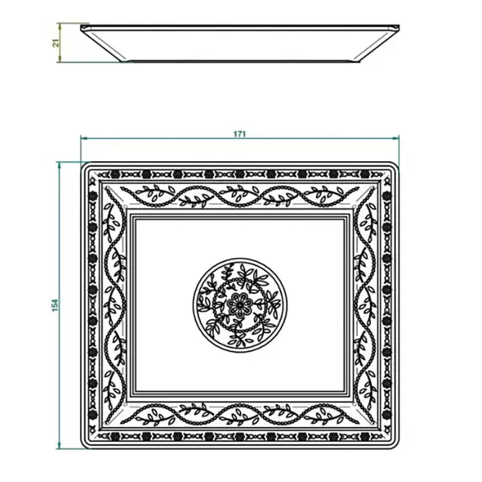 THG MARQUISE BLANC DECOR PLATINE Поднос керамический 171х154 мм., настольный, middle size, декор платина, цвет: белый