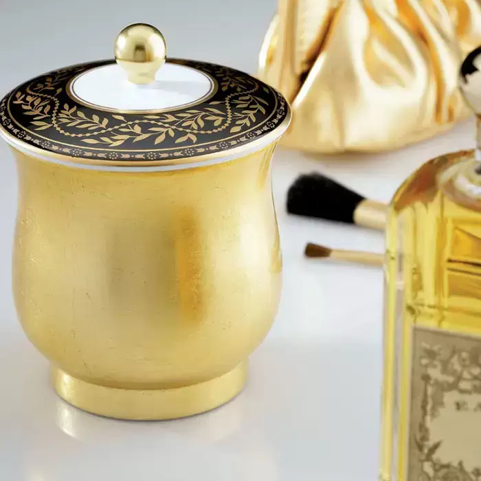THG MARQUISE NOIR DECOR OR Китайская лакированная коробка с белой керамической крышкой Ø94 мм., small size, декор черный/золото, цвет: золото