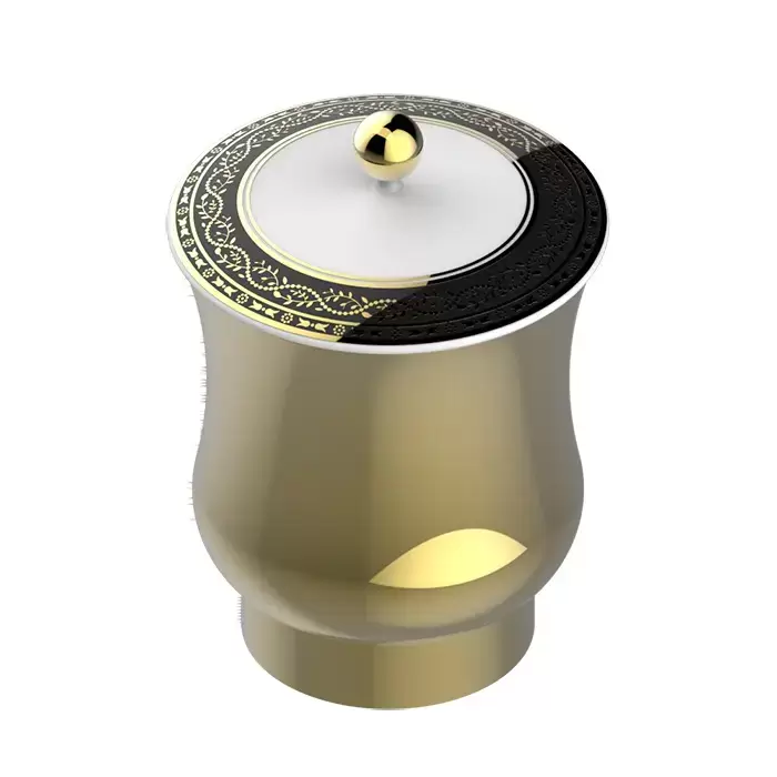 THG MARQUISE NOIR DECOR OR Китайская лакированная коробка с белой керамической крышкой Ø126 мм., middle size, декор черный/золото, цвет: золото