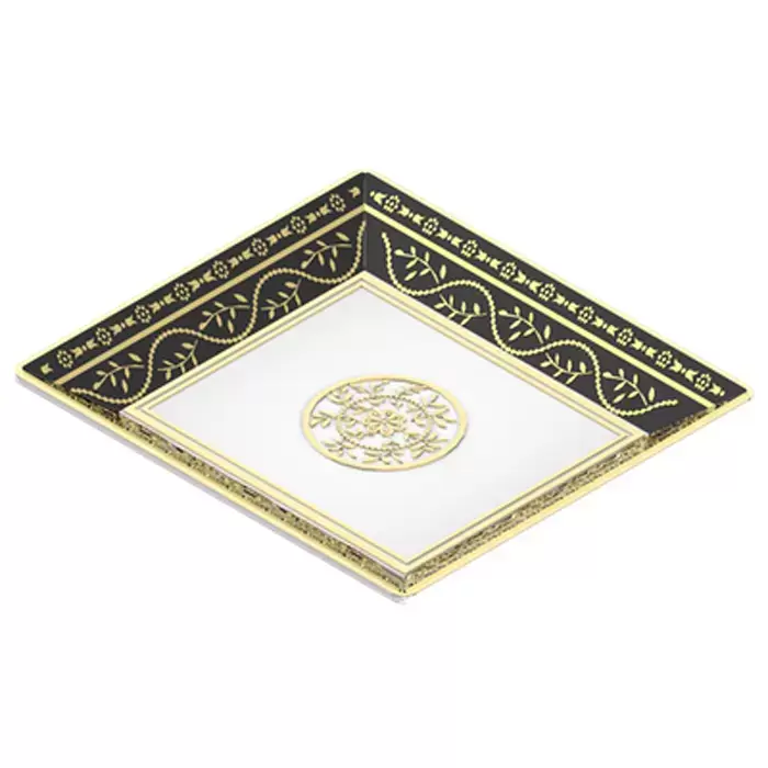 THG MARQUISE NOIR DECOR OR Поднос керамический 220х198 мм., настольный, large size, декор черный/золото, цвет: белый