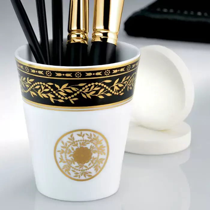 THG Marquise noir décor Or Стакан керамический, настольный, декор черный/золото, цвет: белый
