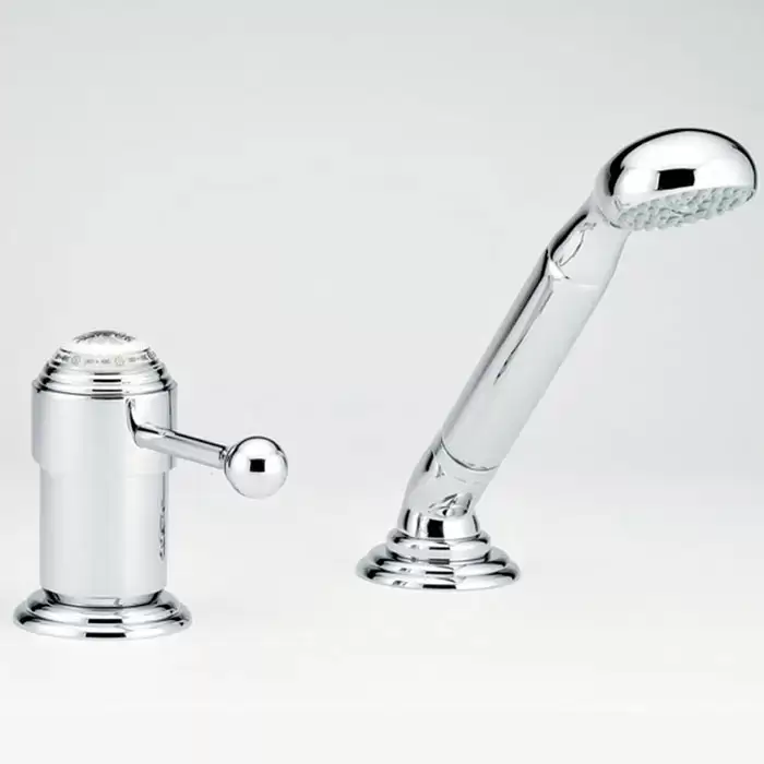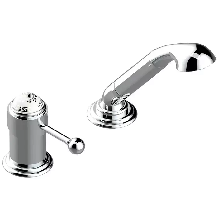 THG Marquise platinum decor Смеситель на борт ванны на 2 отв, однорычажный, без излива, с ручным душем, ручки белые, декор платина, цвет: хром