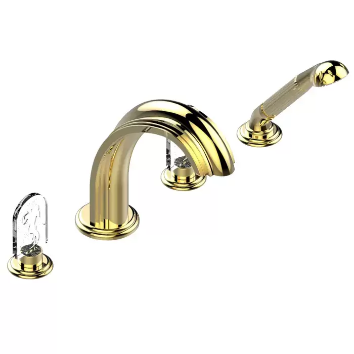 THG Naïade Cмеситель для ванны, 4 отв., цвет: золото/прозрачный хрусталь