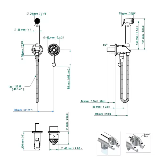 Thg Najem Гигиенический душ, со встраиваемым смесителем, шланг 125см., держат с подводом воды, внешн часть, цвет: полированное золото