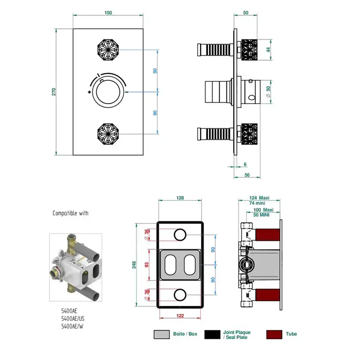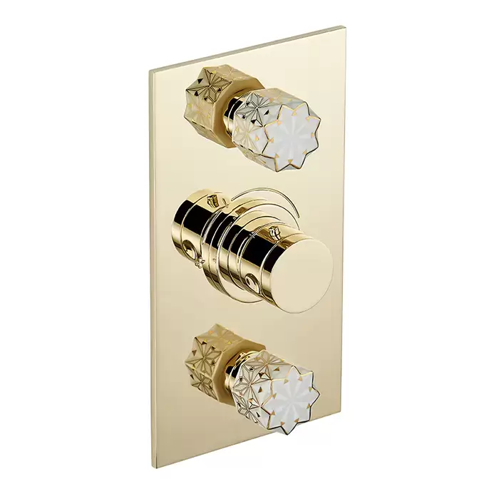 THG Nihal Porcelaine Ivoir Смеситель для душа встраиваемый, термостатический, с двумя запорными вентилями, внешняя часть, цвет: Soft gold