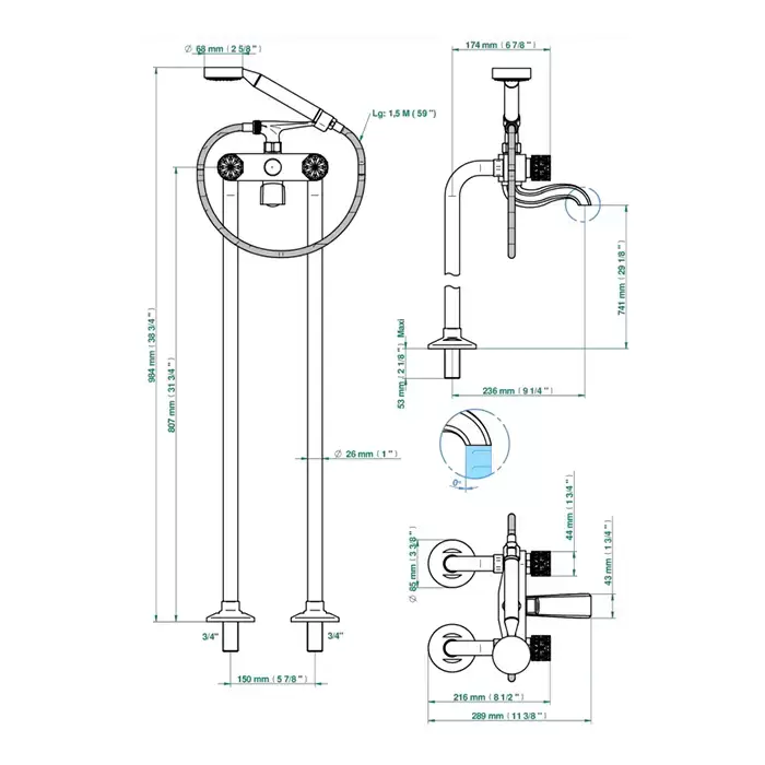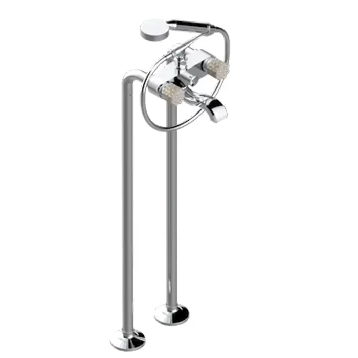 THG Nihal Porcelaine Ivoire Смеситель для ванны, напольный, с ручным душем и шлангом 150см., цвет: Хром