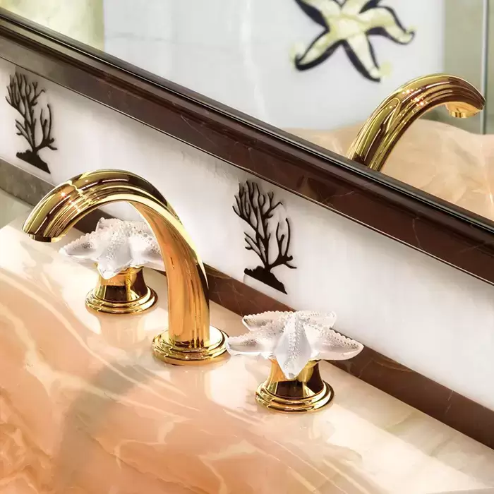 THG Oceania Смеситель для раковины, 3 отв., цвет: золото/прозрачный хрусталь