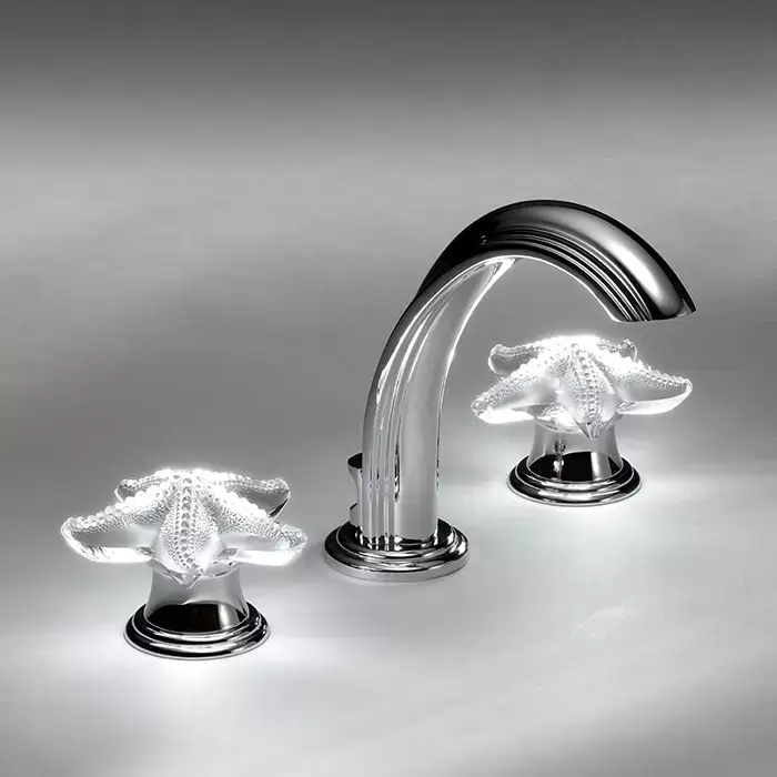 THG Oceania Смеситель для раковины на 3 отверстия, ручки с подсветкой, с донным клапаном, цвет: хром