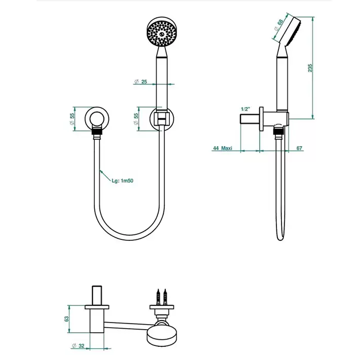 THG Paradise Душевой комплект с ручным душем, шланг 1500 мм., держатель и подвод воды, цвет: хром