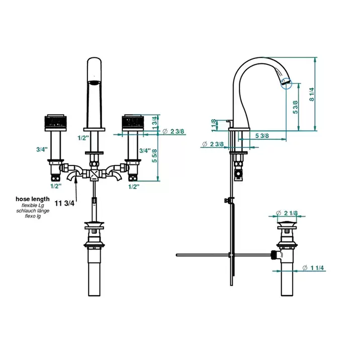 THG Paradise Смеситель для раковины, 3 отв., с донным клапаном, цвет: хром/хрусталь