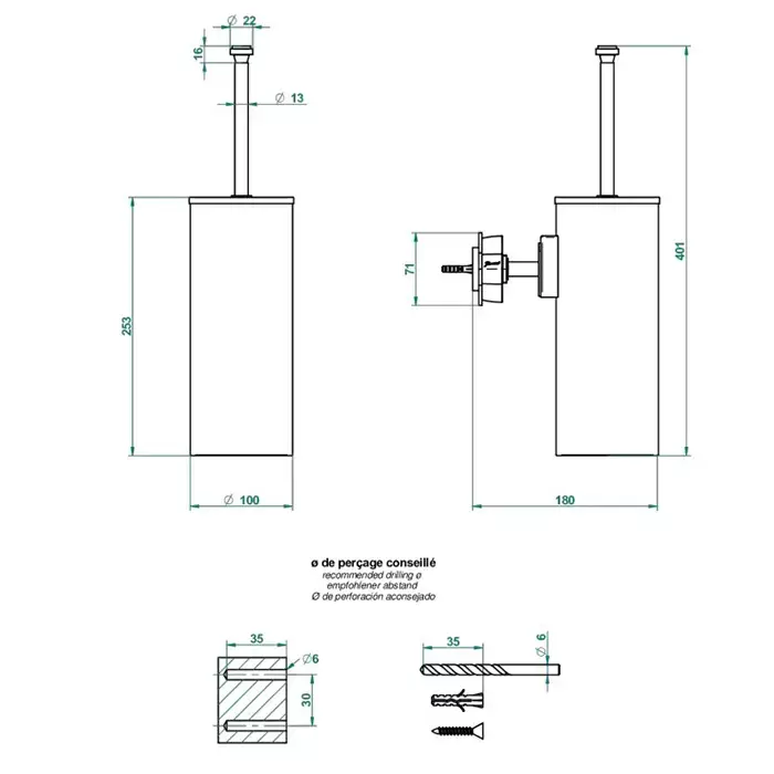 THG Petale De Cristal Bleu Ёршик для унитаза, подвесной, цвет: полированное золото