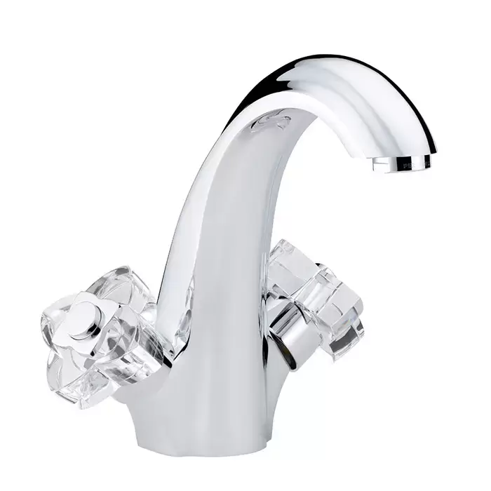 THG Pуtale de cristal clair Смеситель для раковины, 1 отв., цвет: хром/прозрачный хрусталь