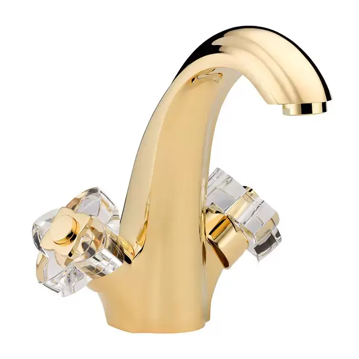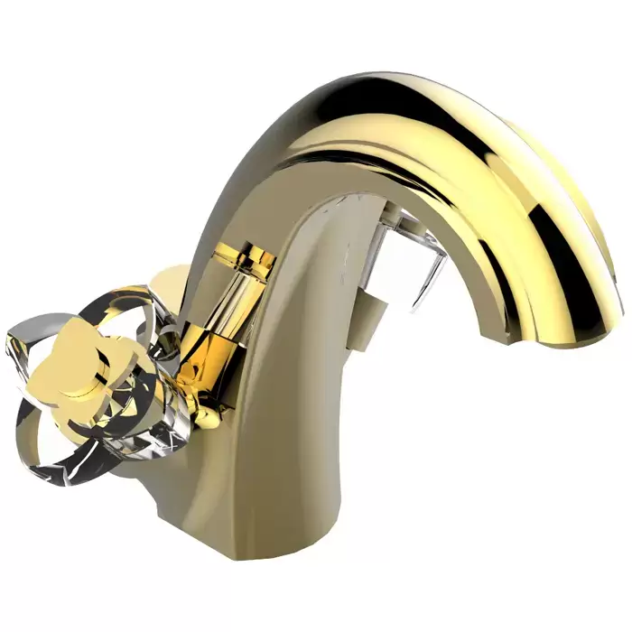 THG Pуtale de cristal clair Смеситель для раковины, 1 отв., цвет: золото/прозрачный хрусталь