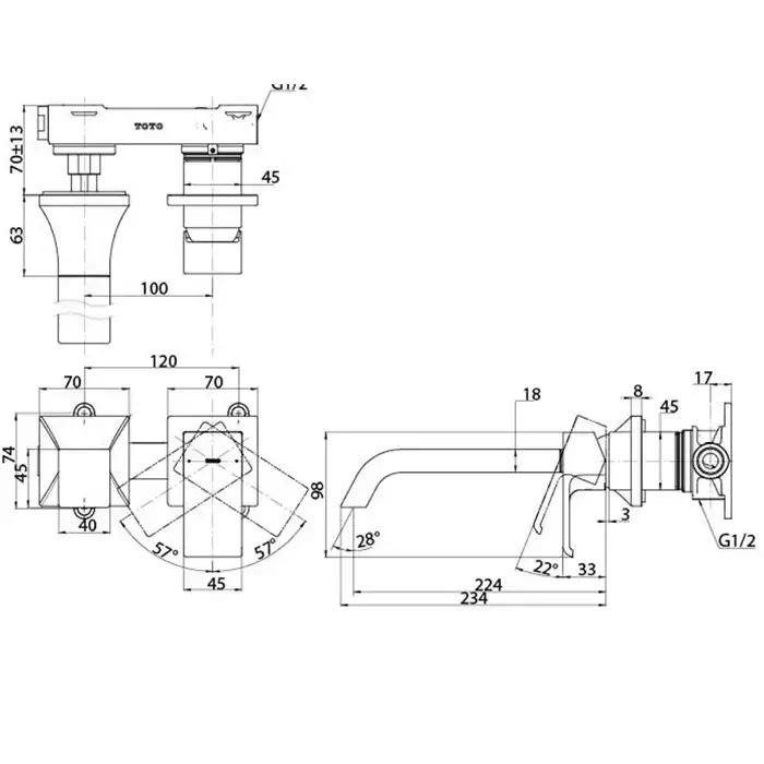 TOTO GC Смеситель для раковины встраиваемый на 2 отв, цвет: хром