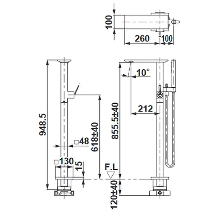 TOTO NEOREST Смеситель для ванны отдельност., с ручным душем, латунь, цвет: хром (нужно основание TBN01105R)