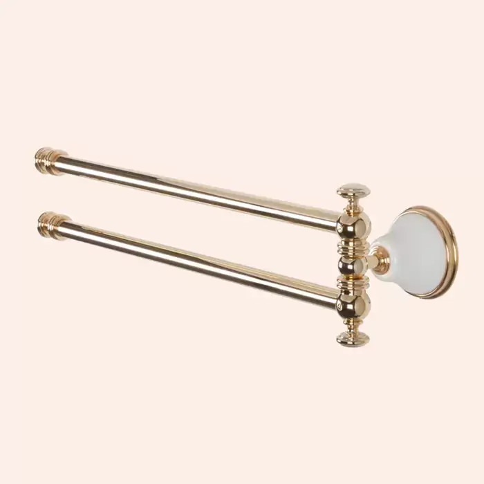 TW Harmony 013, вращающийся полотенцедержатель двойной 49см, подвесной, цвет: белый/золото