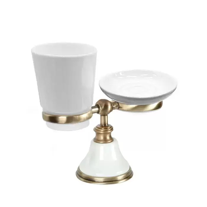 TW Harmony 141, настольный держатель с мыльницей и стаканом, цвет: белый/бронза