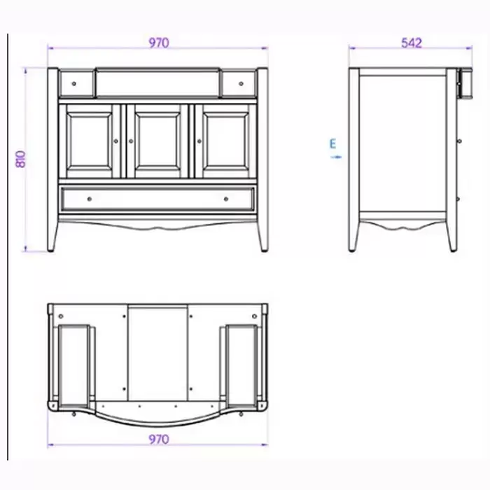 TW Veronica, База с раковиной Simas AR874bi*1 105x56см, 2 верх.ящ. 3 расп. дв. и 1 выдв. ящик, доводч. Blum, ручки: Riflesso бронза, напольный, цвет: GRIGIO