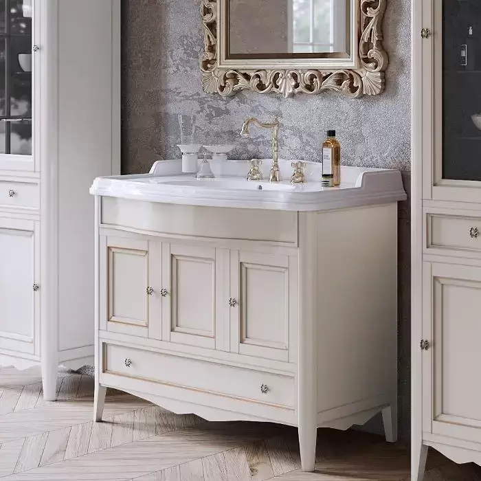 TW Veronica, База с раковиной Simas AR874bi*1 105x56см, с 1отв., 3 расп. дв. и 1ящик, доводч. Blum, ручки: Riflesso бронза, напольная, цвет: VINTAGE