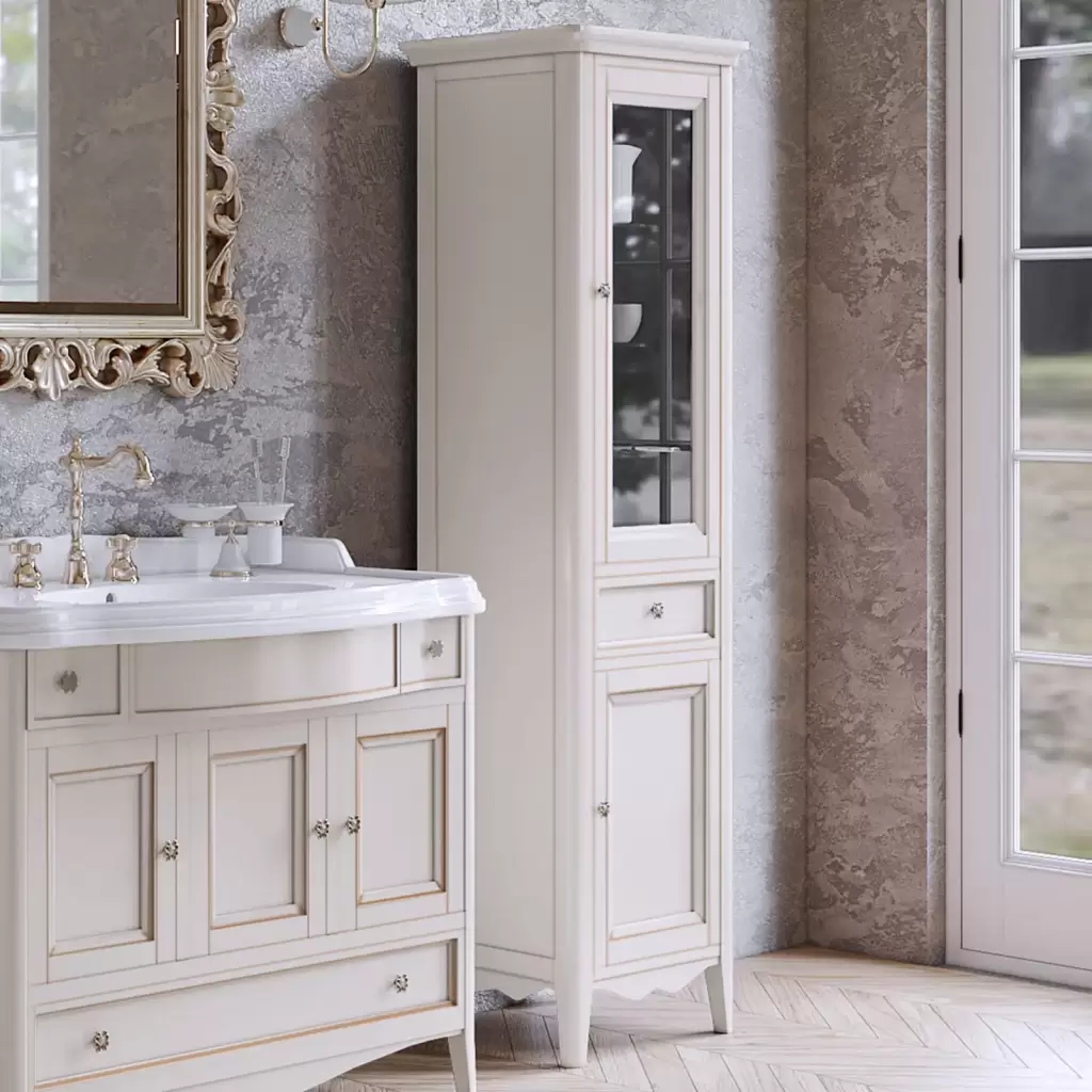 TW Veronica, Колонна 50.2/45x40/37.4 x h172см, 1выдв.ящик, 2 распашные дверки, доводчики Blum (петли справа-DX), напольная, цвет: VINTAGE, ручки: Riflesso бронза