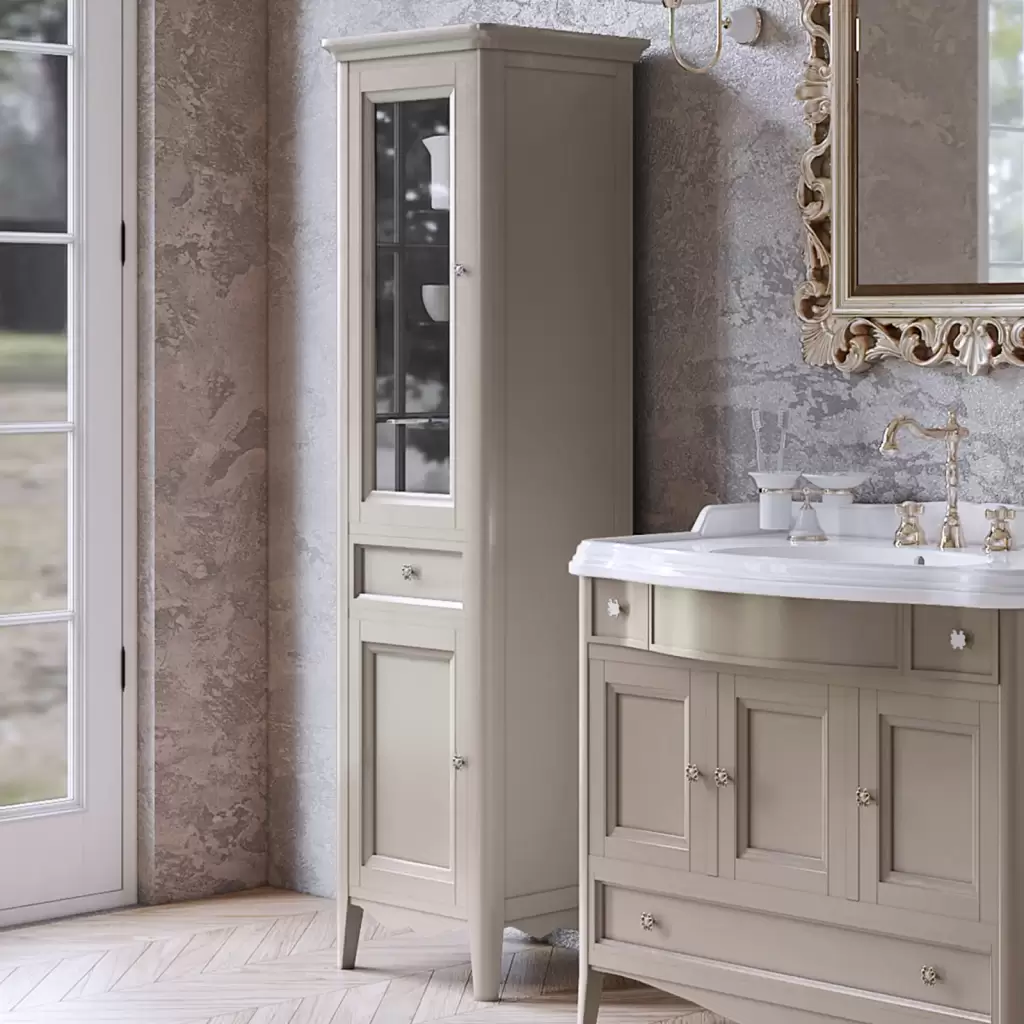 TW Veronica, Колонна 50.2/45x40/37.4xh172см, 1выдв.ящик, 2 распашные дверки, доводчики Blum (петли слева-SX), напольная, цвет: TORTORA, ручки: Riflesso бронза
