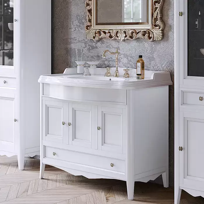 TW Veronica Nuovo комплект мебели с 1-м выдвижным ящиком и 3-мя дверцами, с доводчиками Blum, ручки: бронза. 105см, напольный, цвет: белый