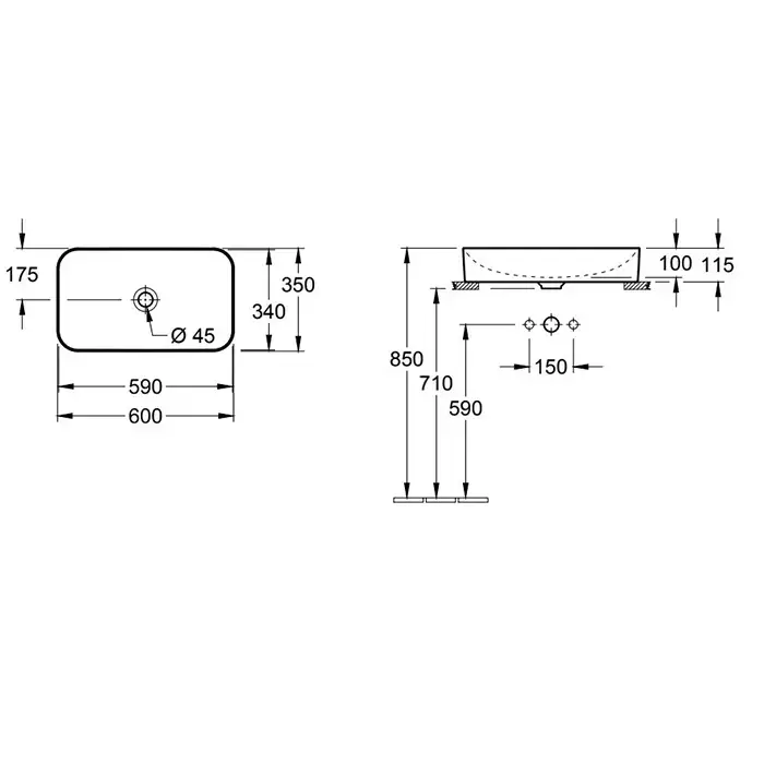 Villeroy&Boch Finion Раковина накладная 60х35х11.5см., без отв., CeramicPlus, цвет: белый