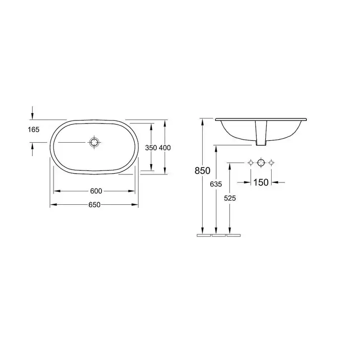 Villeroy&Boch O.novo Раковина врезная под столешницу 60x35см, с переливом, цвет: альпийский белый