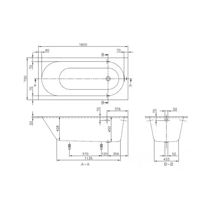 Villeroy&Boch Oberon Ванна встраиваемая 160x75x45см, прямоугольная, цвет: белый