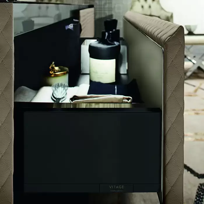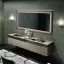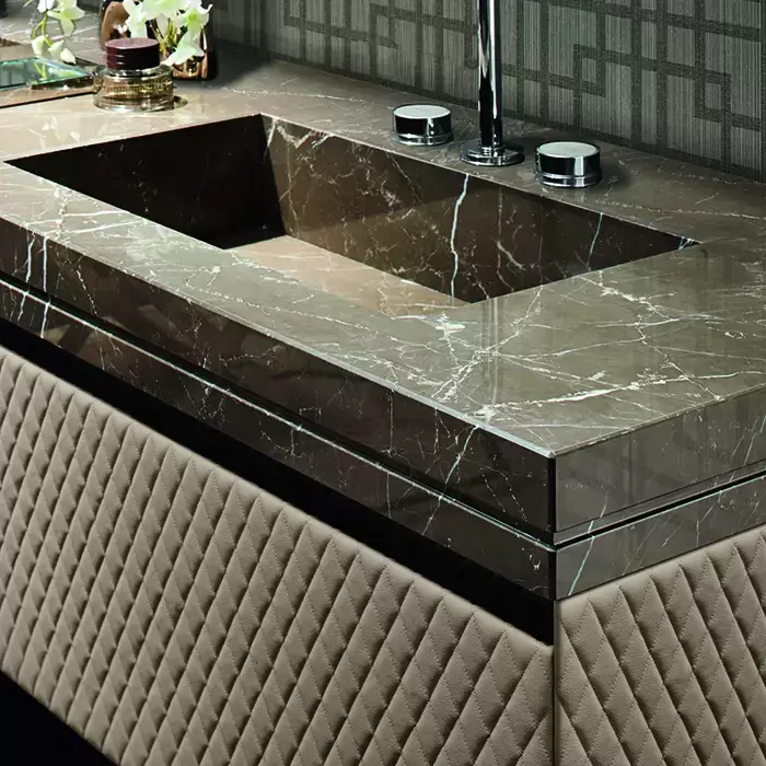VITAGE milldue edition FOUR SEASONS Комплект мебели с базой, интегрированными раковинами PLANS, зеркалом LOSANNA, 216см, подвесной, цвет: мрамор bronzo amani-B58 экокожа visione-223 черный хром