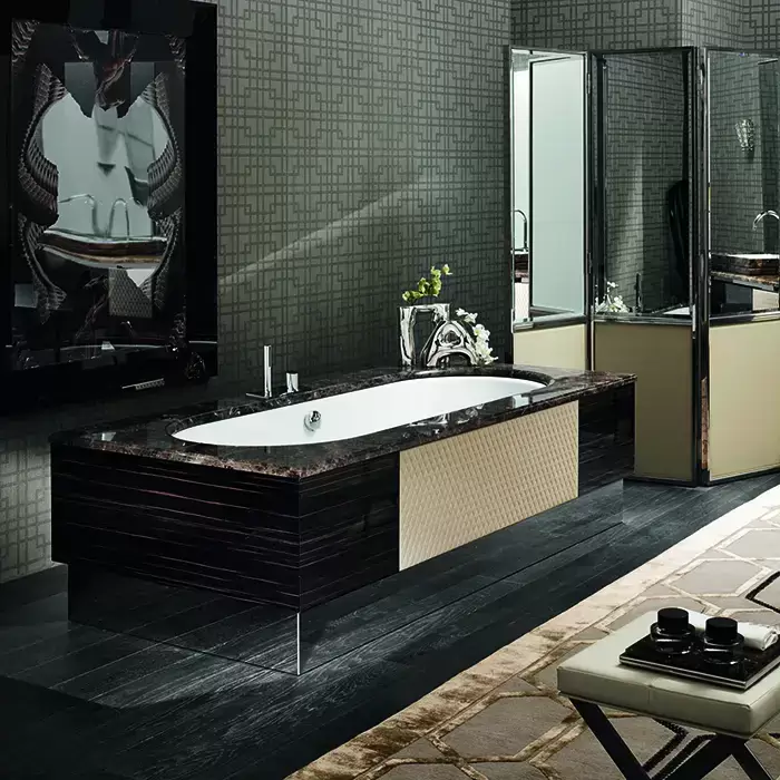 VITAGE milldue edition FOUR SEASONS Ванна 180х75 см, стальная, подача воды из водослива, в комплекте с сифоном, основанием и мраморным топом, отдельностоящая, цвет: Ebano/Emperador