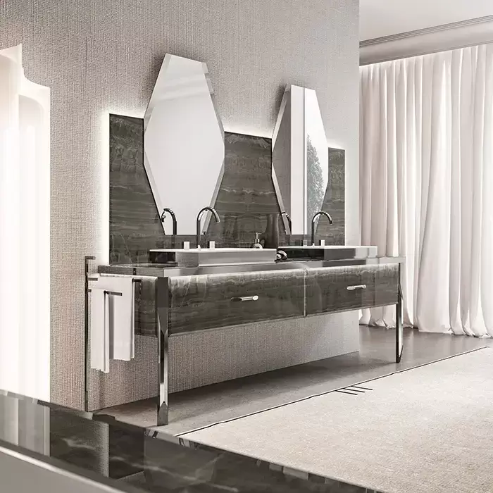 VITAGE milldue edition HILTON 06/b Комплект мебели 226х56х77см напольный, 2 раковины, 2 зеркала, с подсветкой, цвет: alabastro bronze/полированная сталь