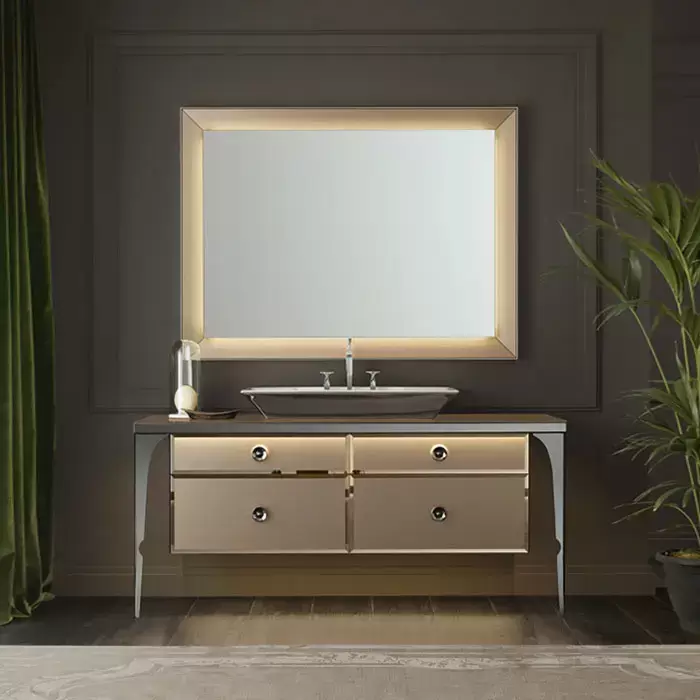 VITAGE milldue edition MAJESTIC 07 Комплект мебели 154х60хh78см., напольная, раковина, зеркало, отделка: стекло Bronzo acidato/black crom
