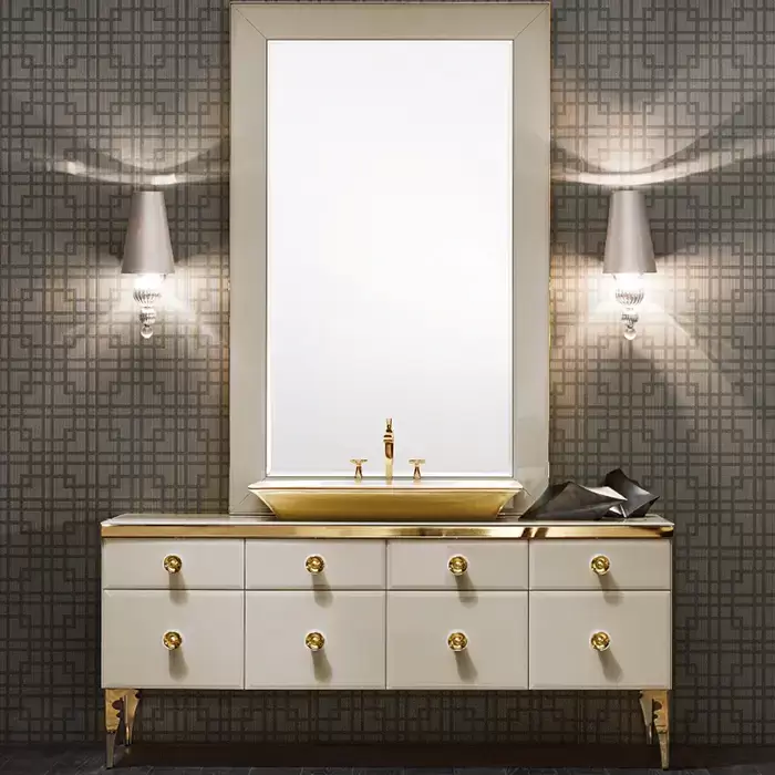 VITAGE milldue edition MAJESTIC Комплект мебели с базой 180см, раковиной NIZZA, зеркалом GINEVRA и светильниками, напольная, ручки золото Цвет: mandorla-13/золото